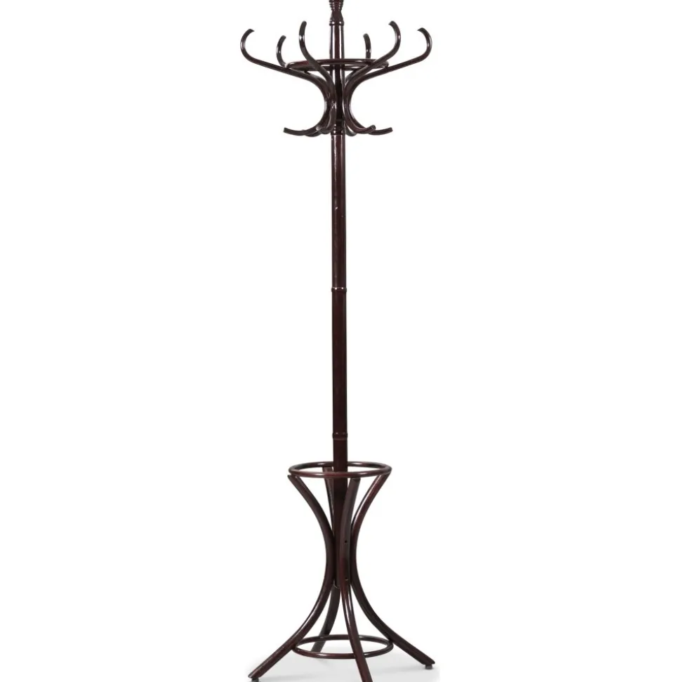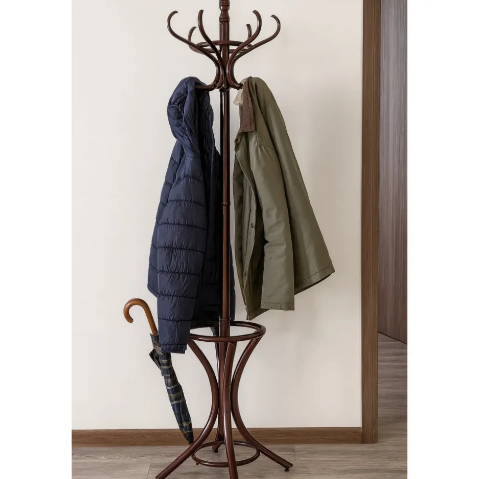 En klassisk med paraplyställ och i en klassisk design. Tillverkad helt i mörkbrunlackerat trä, med ett flertal krokar för att få plats med ett stort antal ytterkläder. Passar perfekt in i hallen. En klassiker som håller för framtiden. Klädhängar som är perfekt för hallen och entrén.