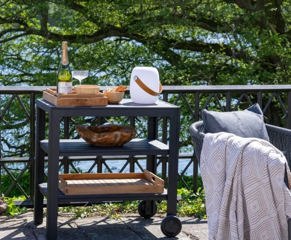 Serveringsvagn av nonwood och svartlackad aluminium. Levereras omonterad.