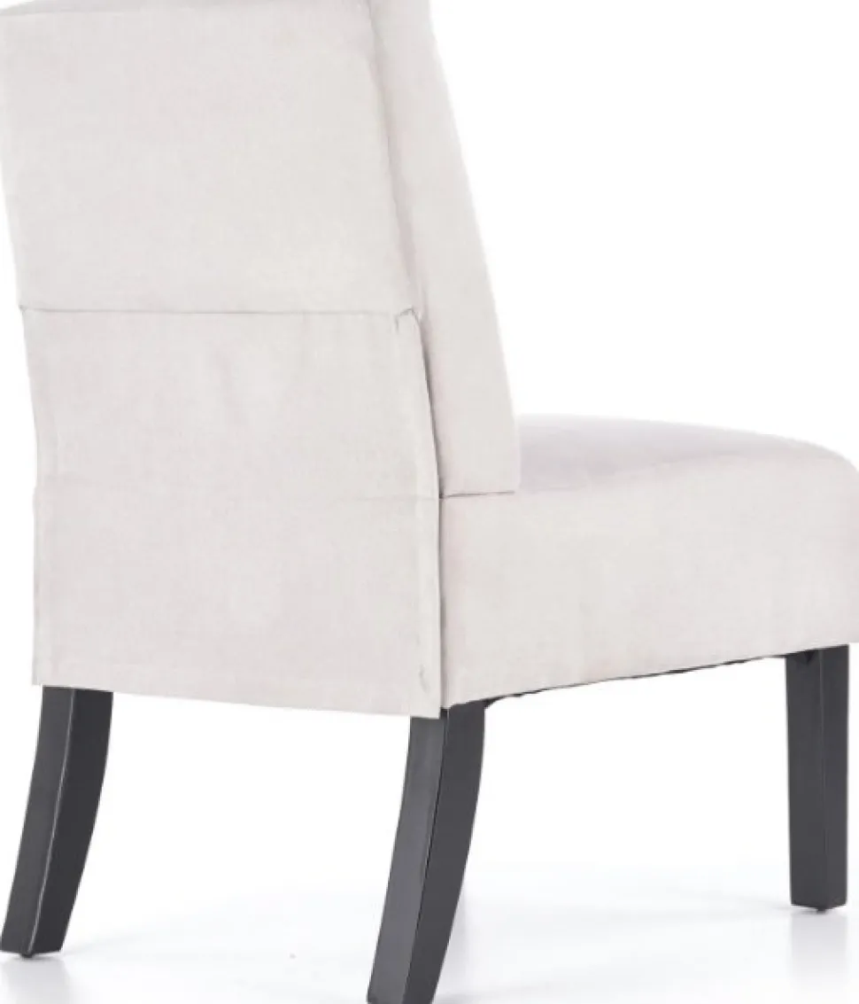 En härlig med en stilren design. Fåtöljen är tillverkad av solid gummiträd med svartmålade ben och sitsen är klädd med ett mycket behagligt tyg för maximal komfort.