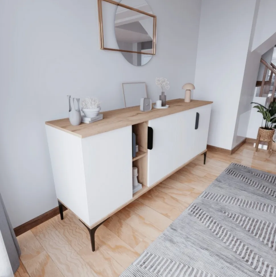 Matbord ek/vit Ø80 cm – Sumner + Textilrengöring för möbler