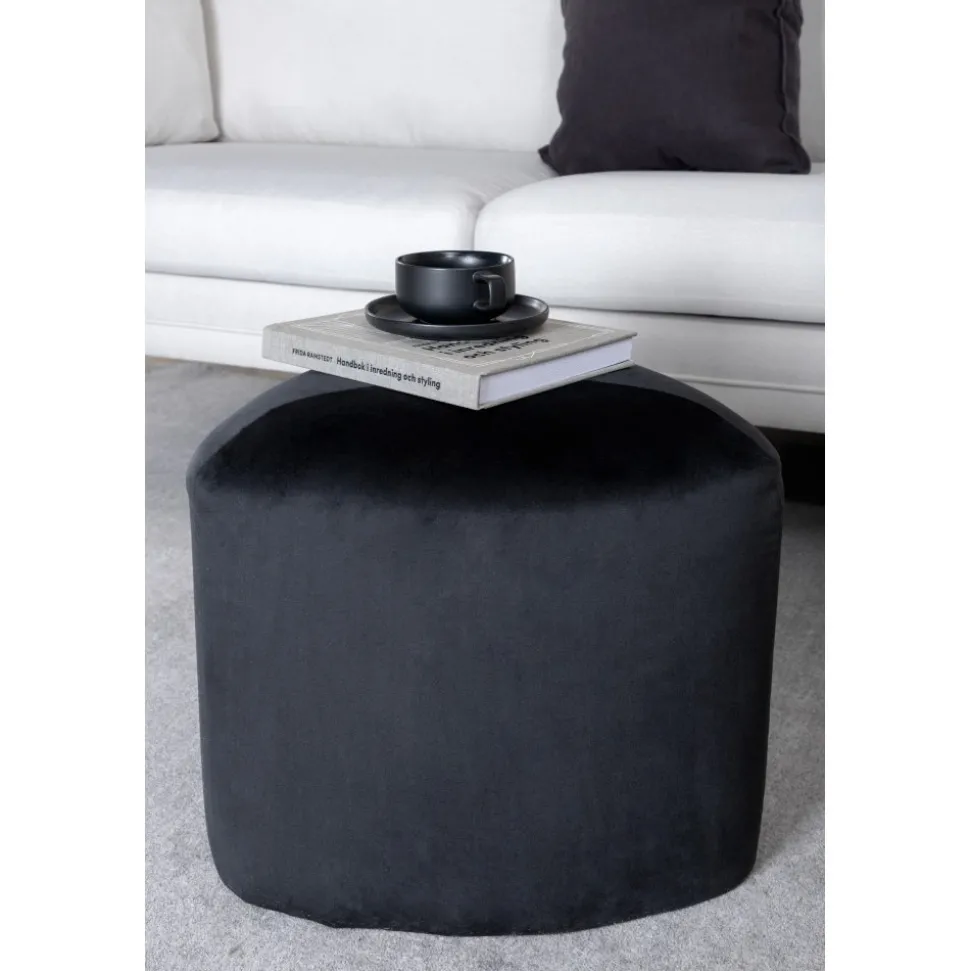 Sittpuff av trä, klädd med polyestertyg.