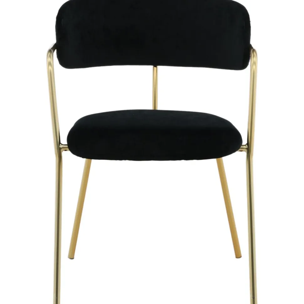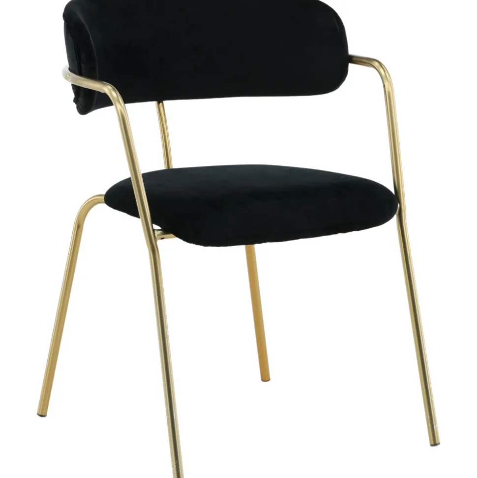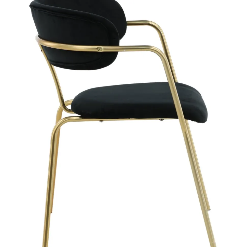 Karmstol av metall och plywood, klädd med polyestertyg.