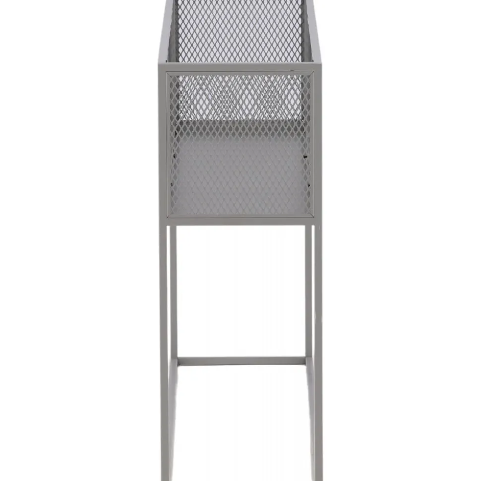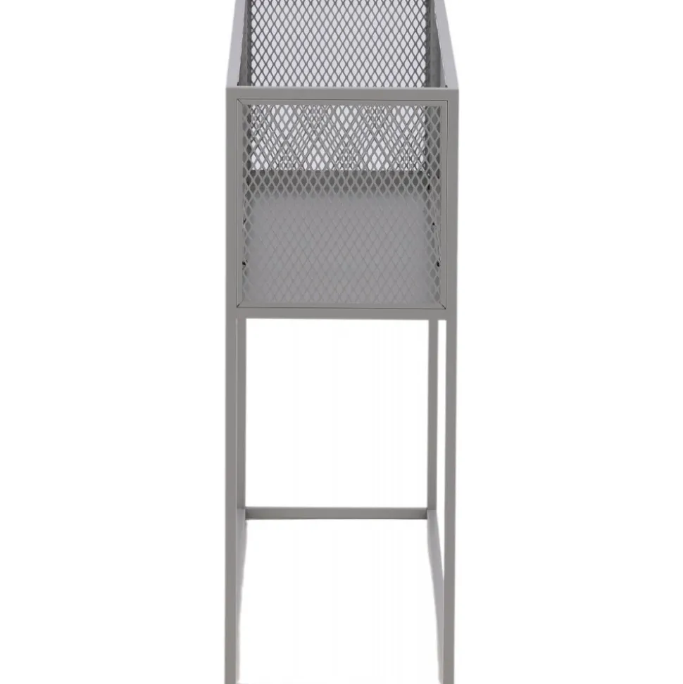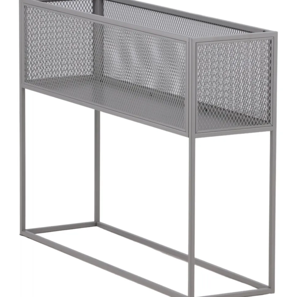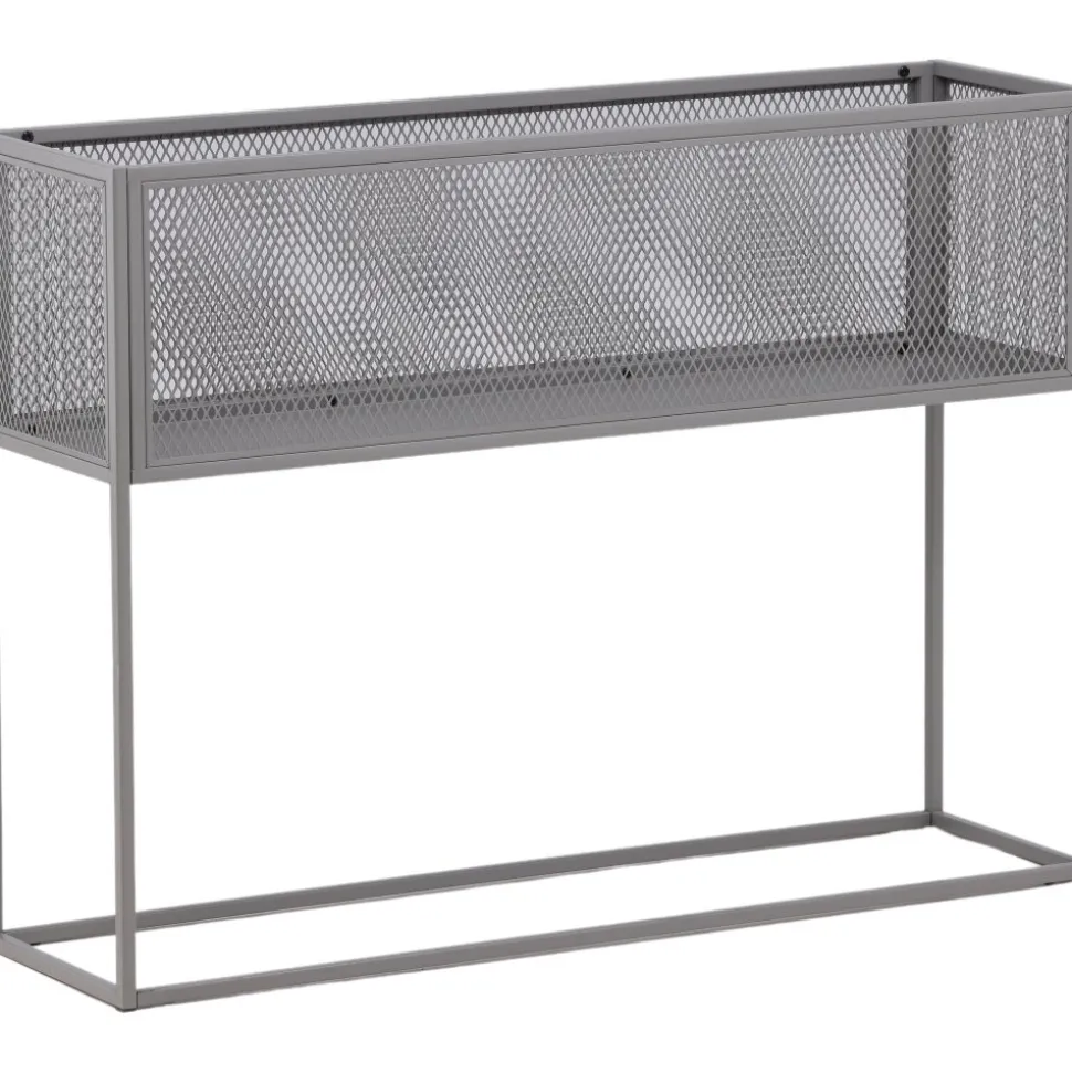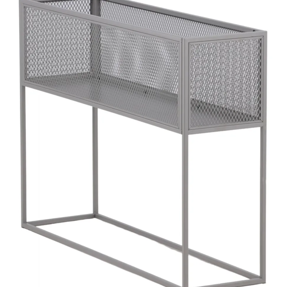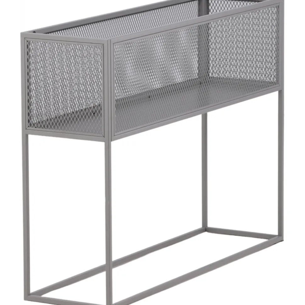 Möblera hemmet modernt och smart med hjälp av Teo avlastningshylla. Det här läckra sidobordet/hyllan har en smäcker industriell design med ett hyllplan för förvaring, nätsidor omkring hela förvaringsytan och smala höga ben i grått stål. Skåpets smidiga storlek och eleganta utsida gör den lättplacerad och passar bra in i de flesta rum i hemmet, så möblera efter egna behov och önskemål och pryd med vackra dekorationer, blommor eller annat som måste förvaras – bara fantasin sätter gränser.
