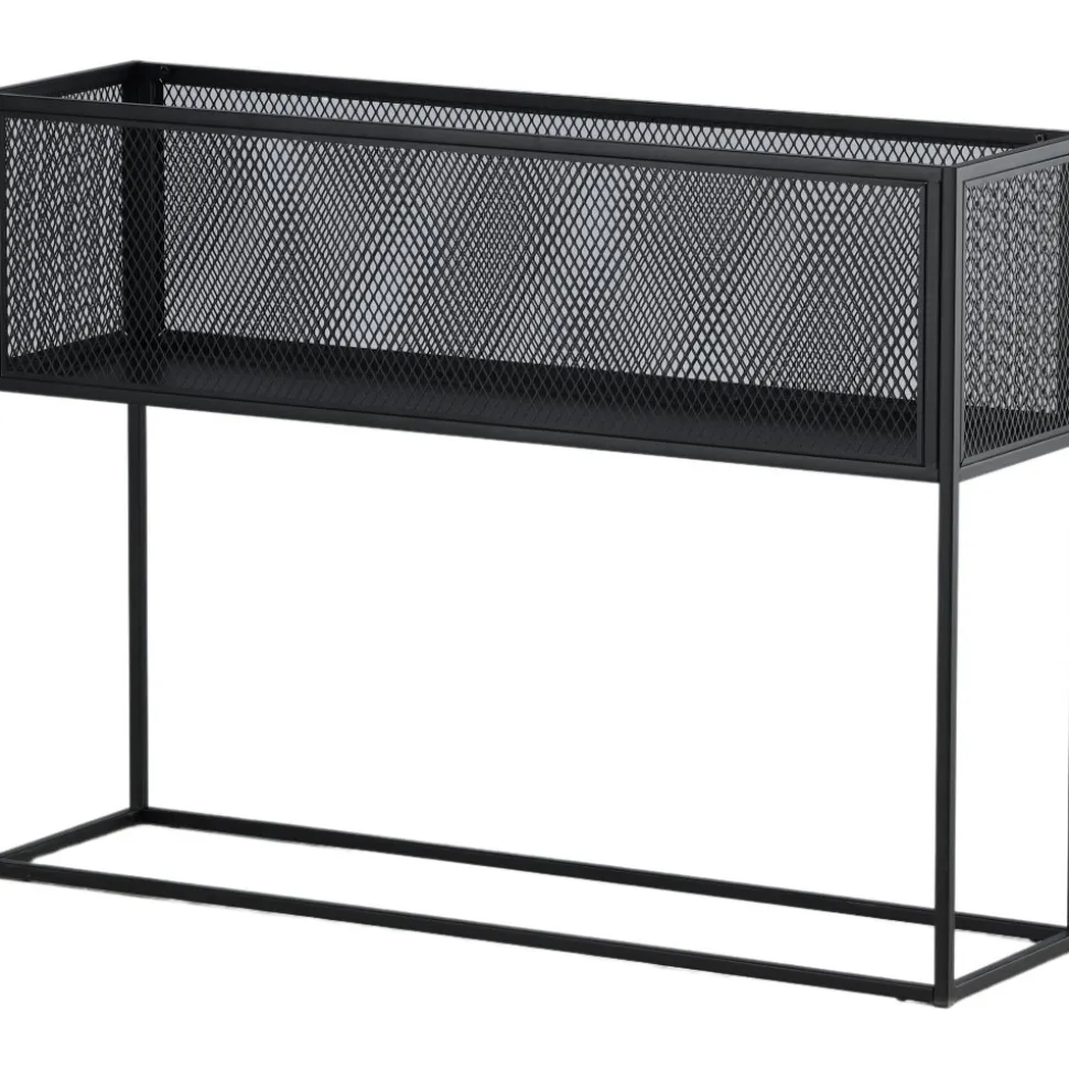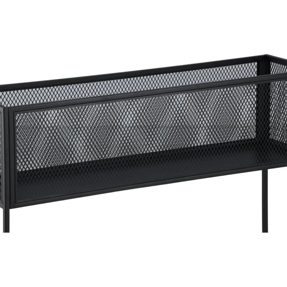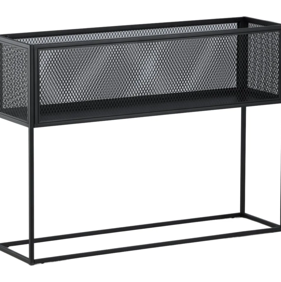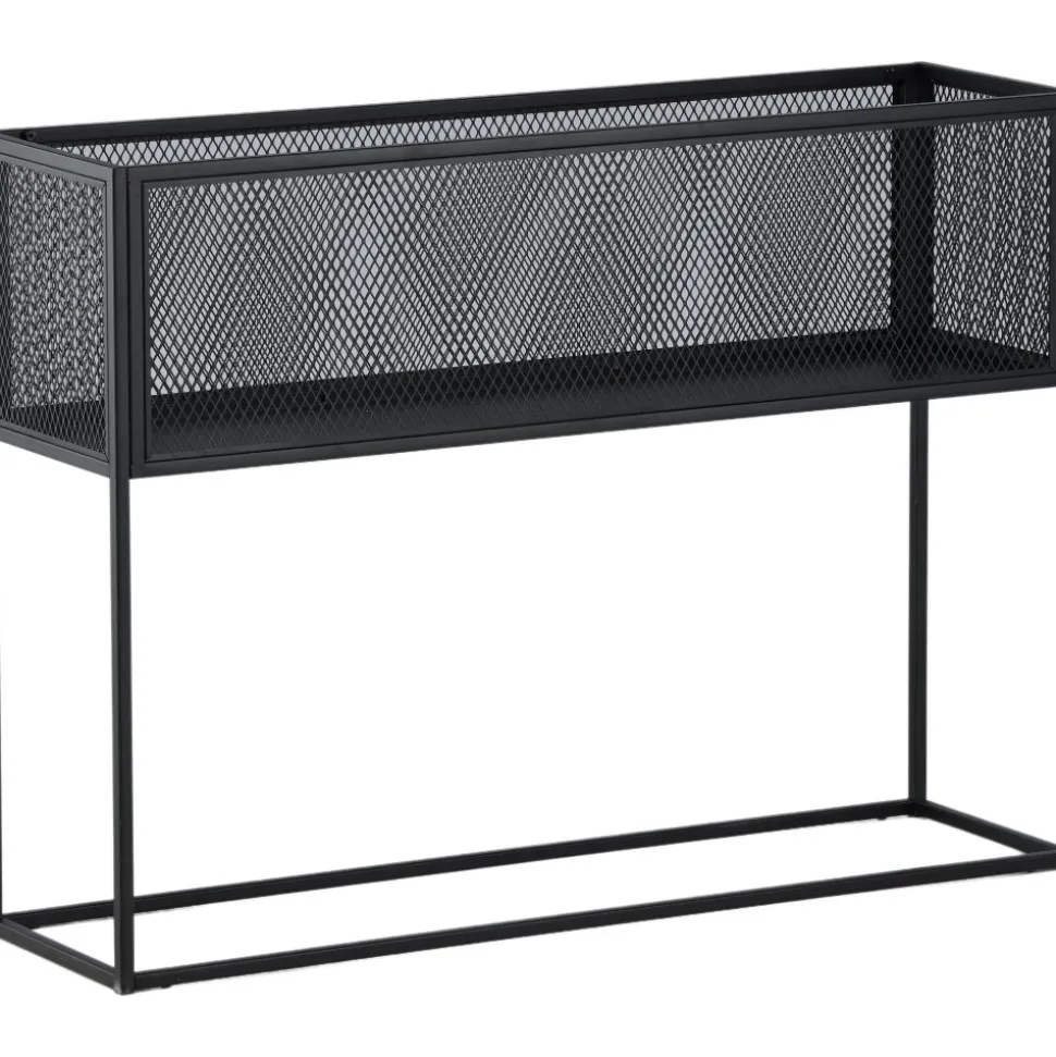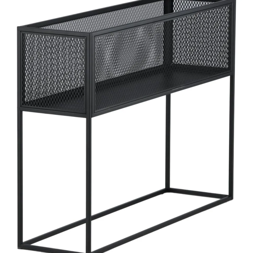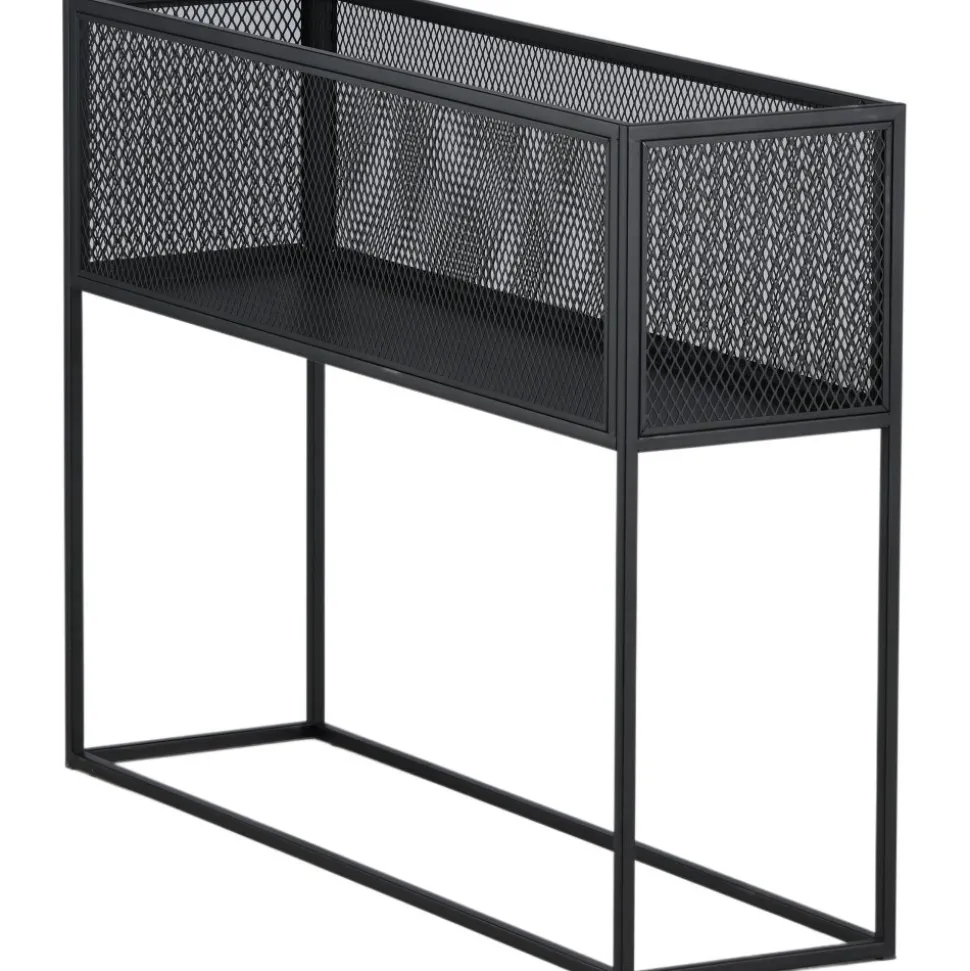 Möblera hemmet modernt och smart med hjälp av Teo avlastningshylla. Det här läckra sidobordet/hyllan har en smäcker industriell design med ett hyllplan för förvaring, nätsidor omkring hela förvaringsytan och smala höga ben i svart stål. Skåpets smidiga storlek och eleganta utsida gör den lättplacerad och passar bra in i de flesta rum i hemmet, så möblera efter egna behov och önskemål och pryd med vackra dekorationer, blommor eller annat som måste förvaras – bara fantasin sätter gränser.