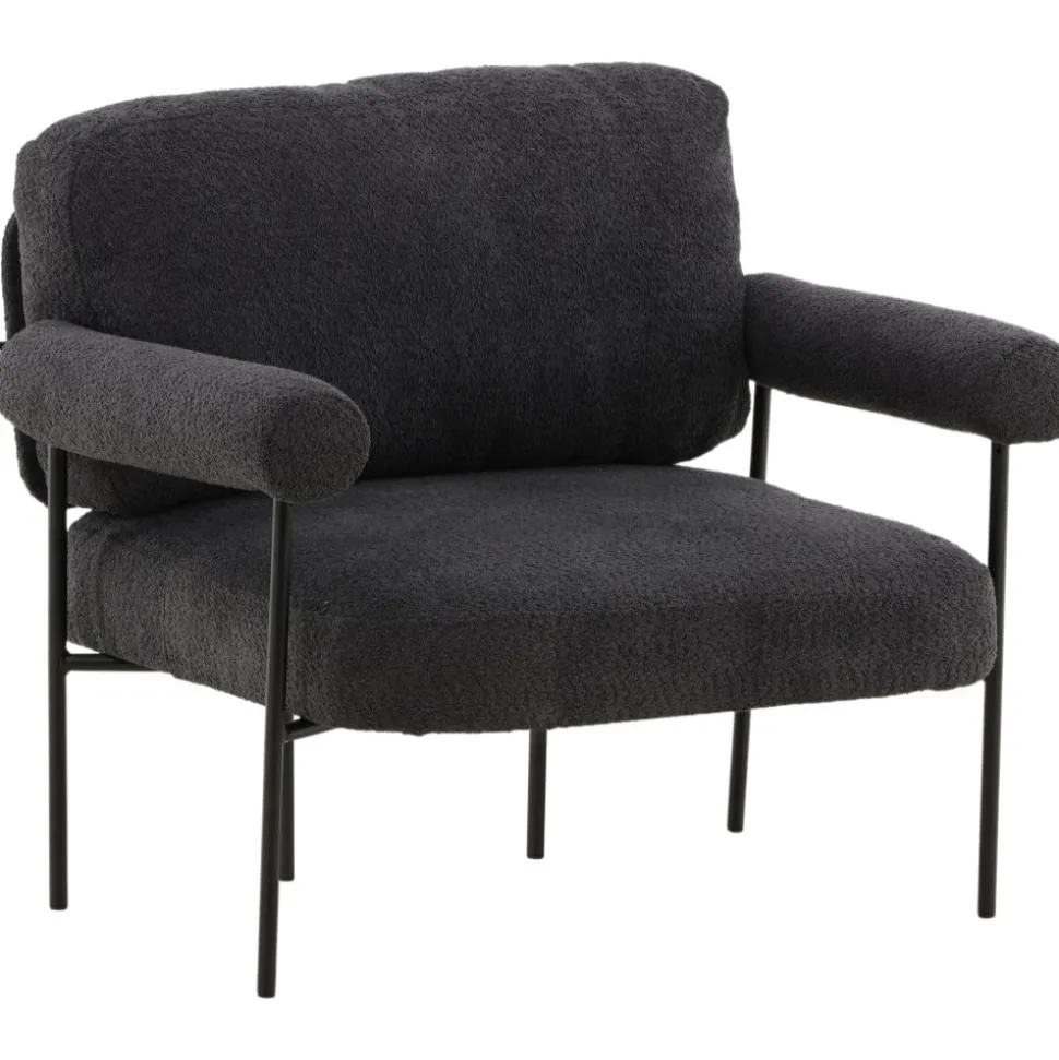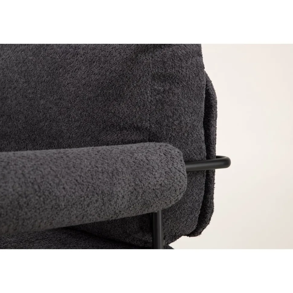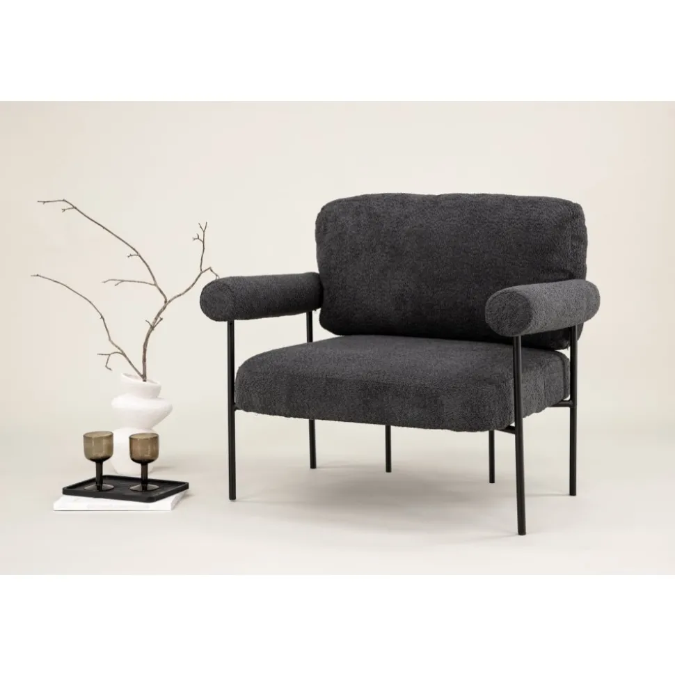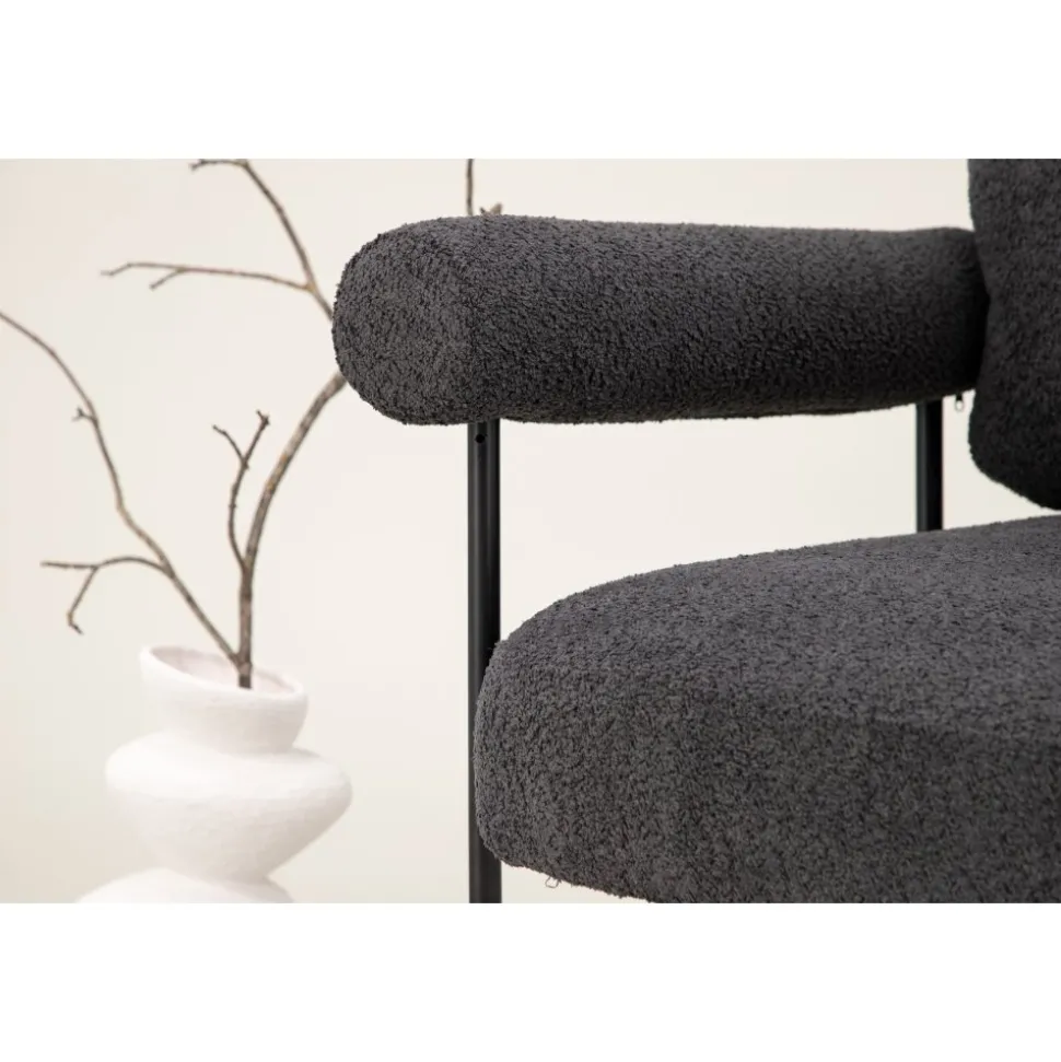 Fåtölj som höjer mysfaktorn i vardagsrummet. Den generösa sitsen tillsammans med det mjuka ryggstödet och rundade armstöden skapar en bekvämlighet utöver det vanliga. Fåtöljen är klädd i ett grått boucletyg och har ben av svart stål. Placera intill soffgruppen eller varför inte ensam som en vacker inredningsdetalj. De nordiska formerna och nostalgiska designen skapar ett härligt blickfång i alla rum och är lätt att matcha med övrig inredning.