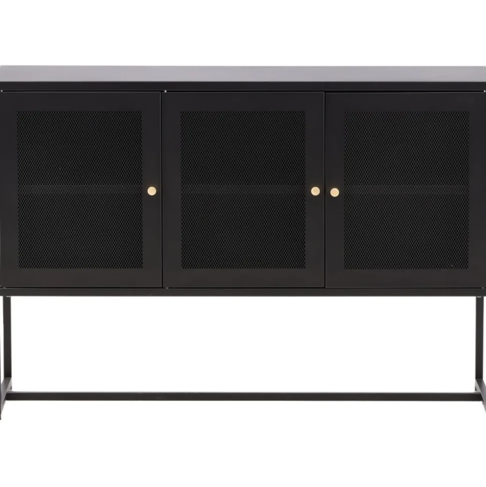 Trerike – ett modernt skåp i en tuff industriell design med läckra nätdörrar och ben tillverkade i svart pulverlackerad stål med 2 smarta hyllplan för avlastning. Skåpet lyfts upp av smala, höga ben som skapar en luftig känsla och underlättar även för dammsugaren. Den perfekta förvaringsmöbeln för allt du önskar – fyll med porslin, böcker eller vackra dekorationer. Skåpets smidiga storlek och eleganta utsida gör den lättplacerad och passar bra in i de flesta rum i hemmet, så möblera efter egna behov och önskemål.