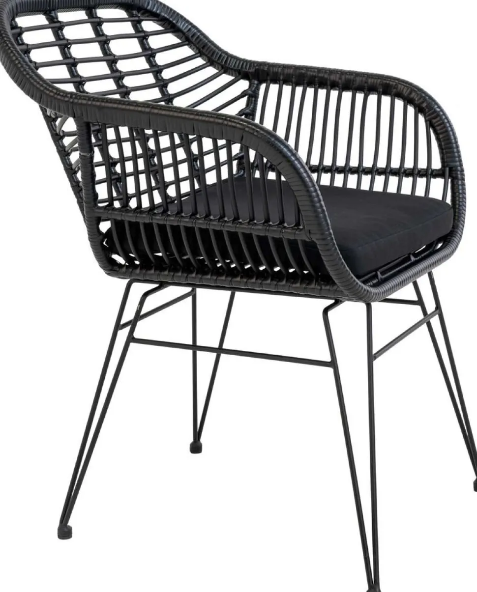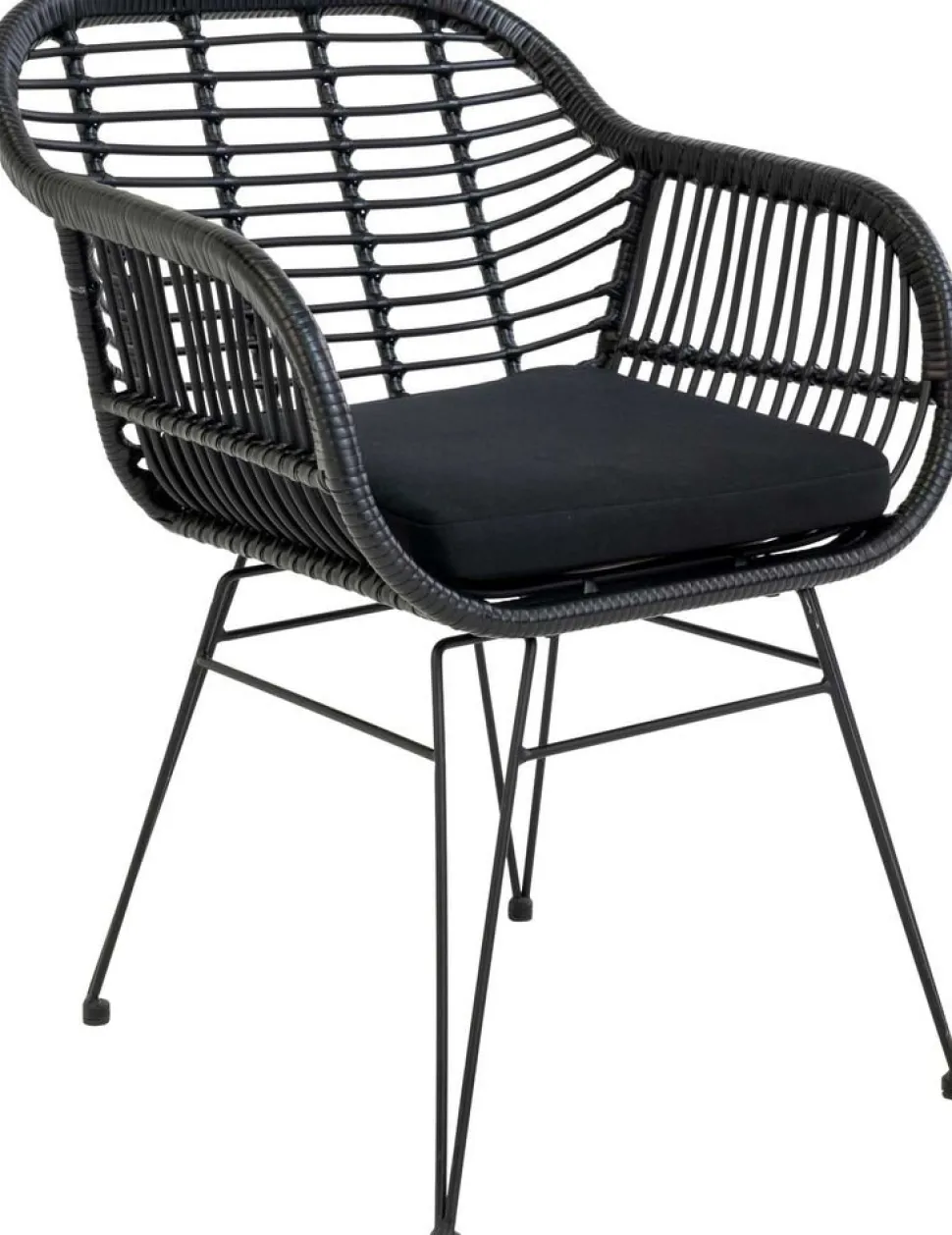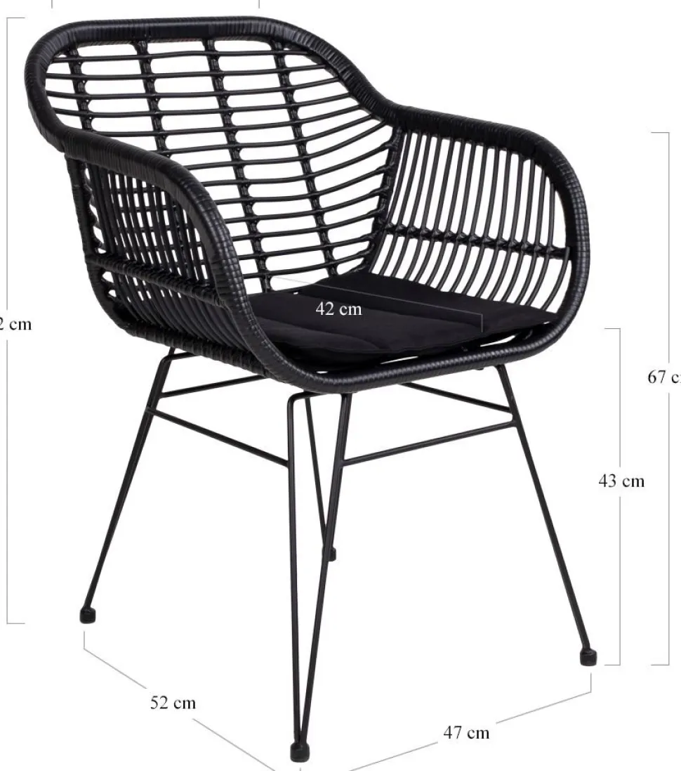 Stol i svart polyrotting med dyna.