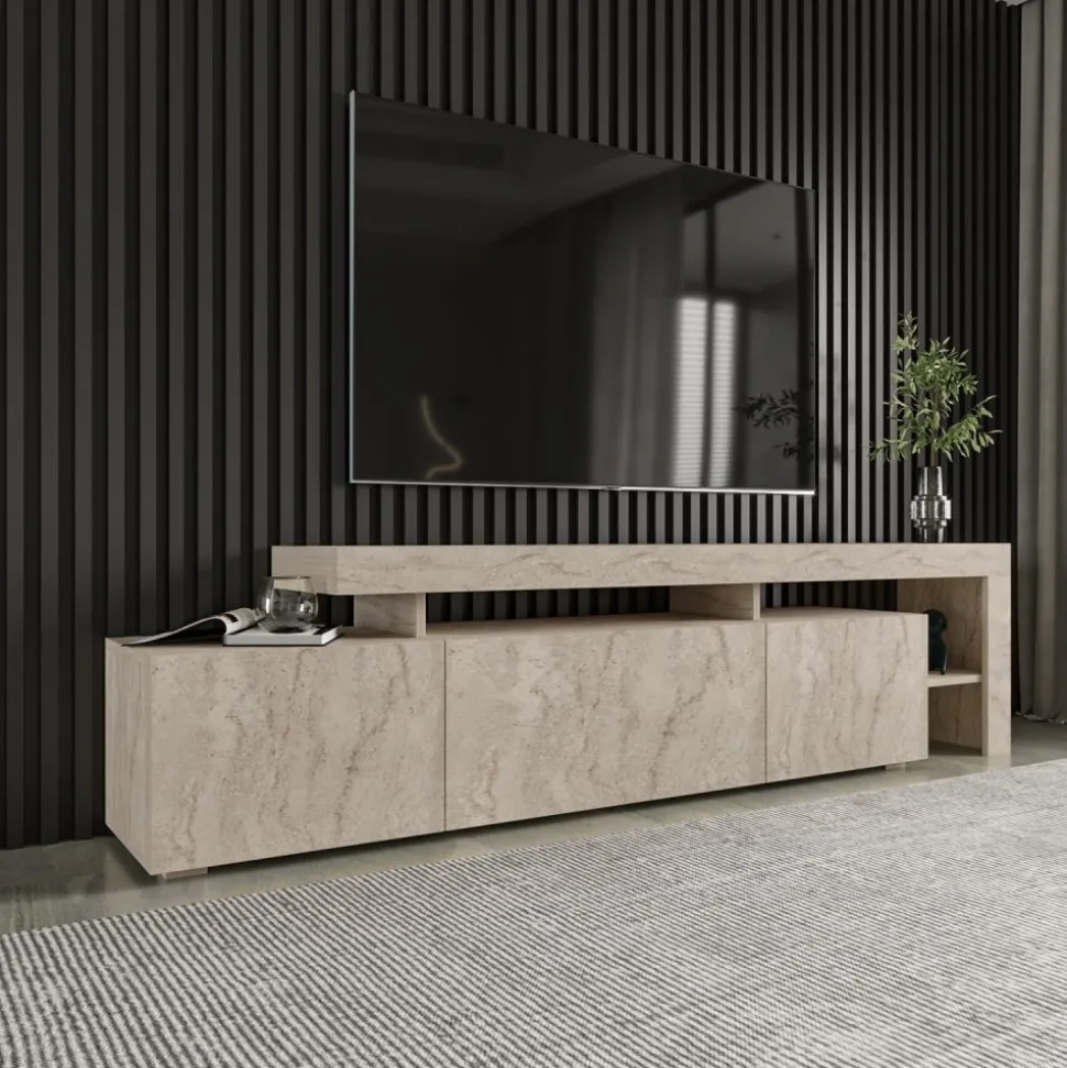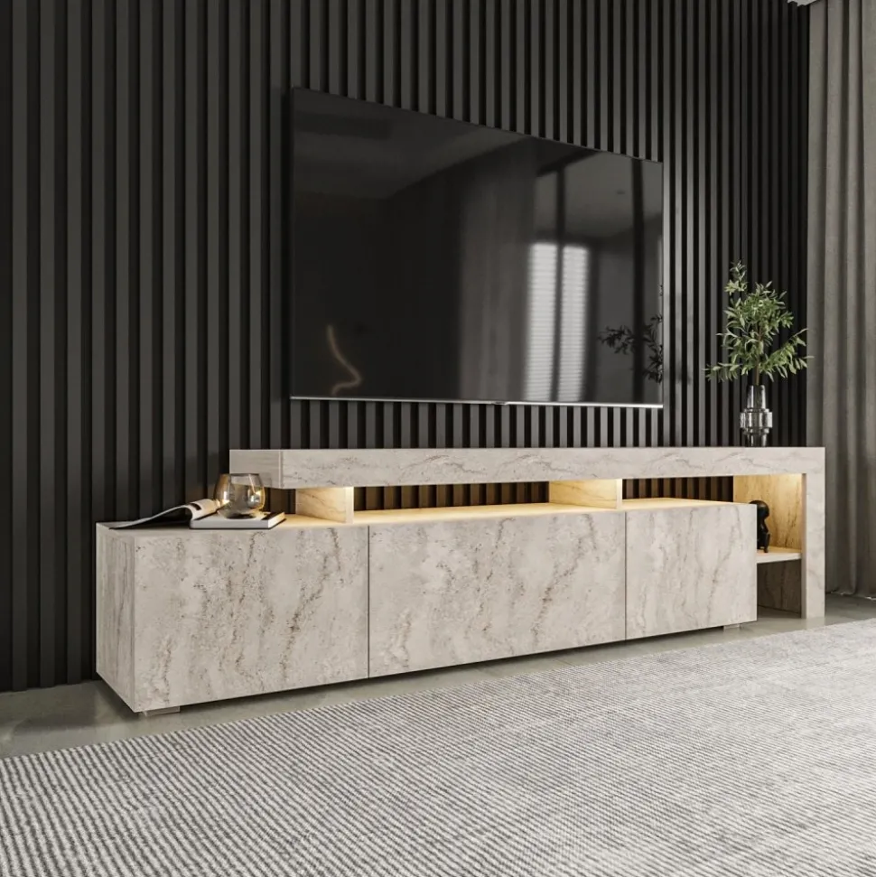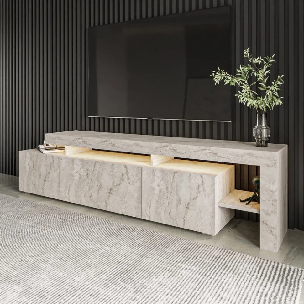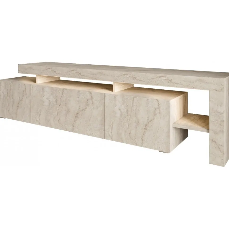 Beliz mediabänk i travertinlook med LED-belysning