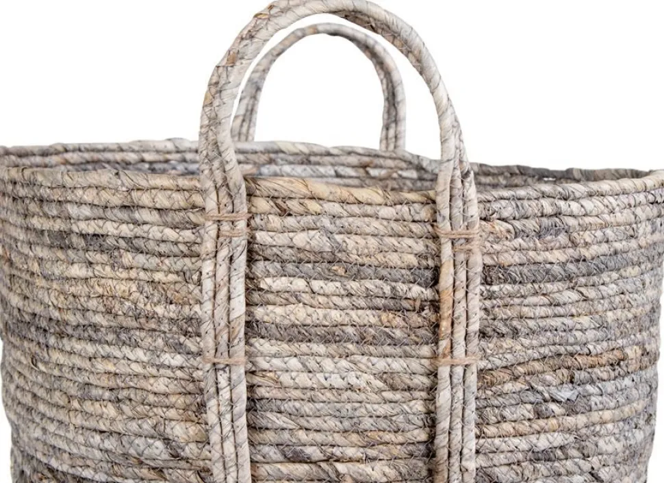 Rund korg i grått.