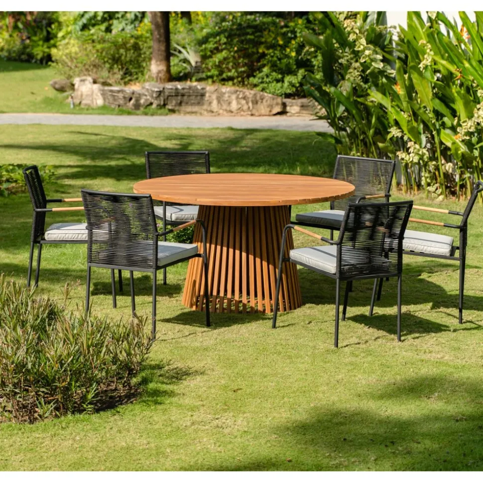 Runt matbord i massiv akacia med vackert mönstrad toppskiva. Rejält cylinderformat underrede för stabil konstruktion.. Finns även i en större storlek. Storkö är en klassisk serie med möbler som är tillverkade i ett vackert akacia med teakolja.
