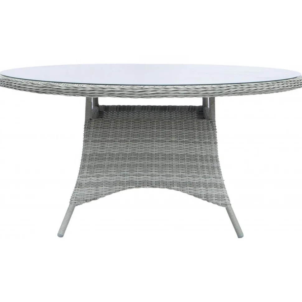 Jacksonville är ett elegant matbord i grå konstrotting med en robust aluminiumstomme och en stilren glasskiva. Det runda bordet ger en inbjudande känsla och passar perfekt för både ute- och inomhusmiljöer.