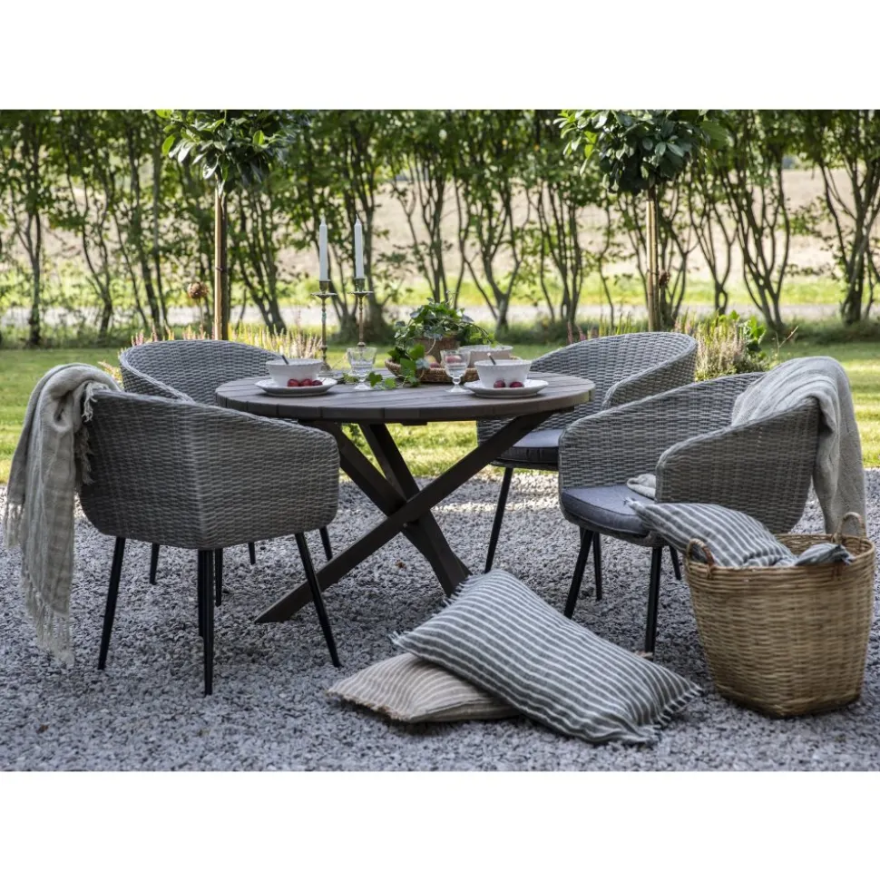 Utegrupp Aster: Scottsdale runt brunt matbord Ø112 cm inklusive 4 st Aster karmstolar i grå konstrotting