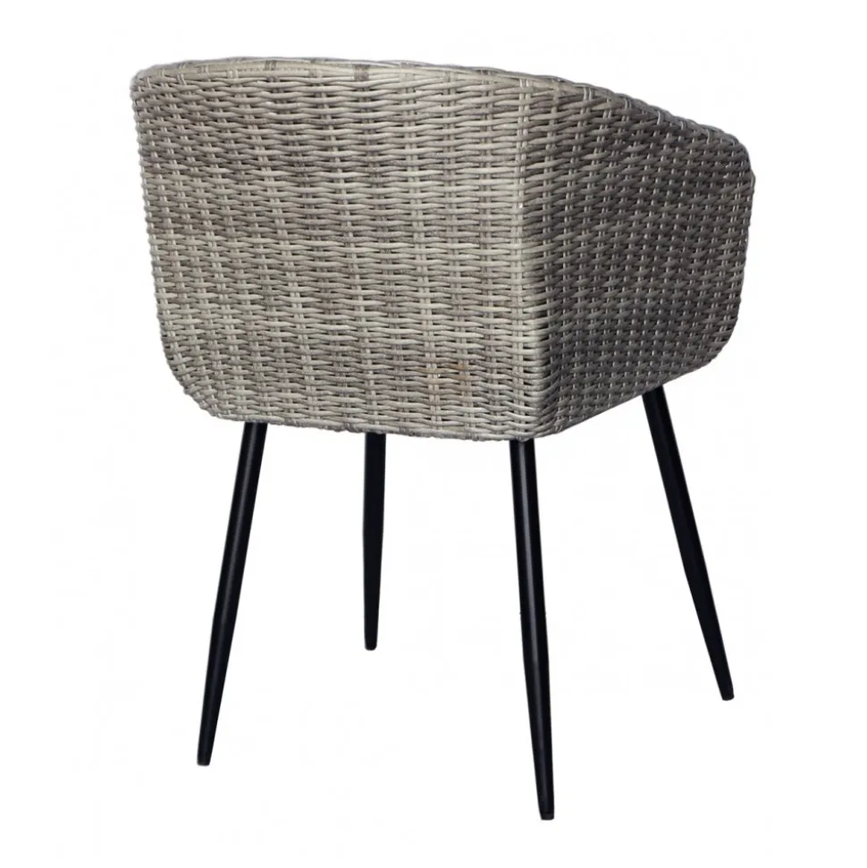 Aster är en elegant och bekväm matstol i grå med svarta metallben en modern kombination som passar perfekt till uteplatsens eller uterummets matbord. Med sin generösa form och integrerade armstöd erbjuder stolen både stil och avslappnad sittkomfort.
