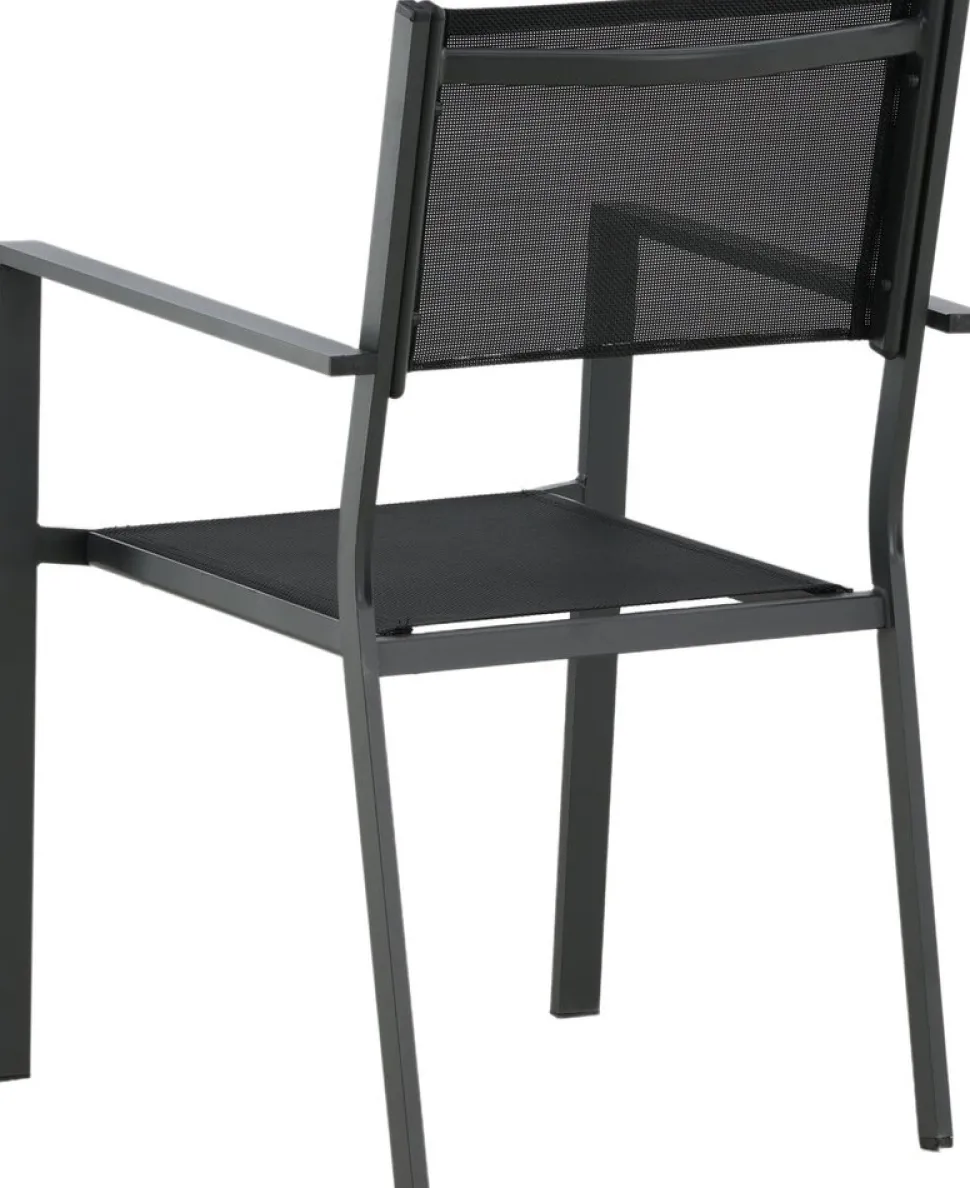 Copacabana är den ideala matstolen för din uteplats, där stil möter funktion. Den svarta aluminiumkonstruktionen ger stolen ett modernt och industriellt utseende, medan sitsen i svart textilene erbjuder både komfort och hållbarhet.