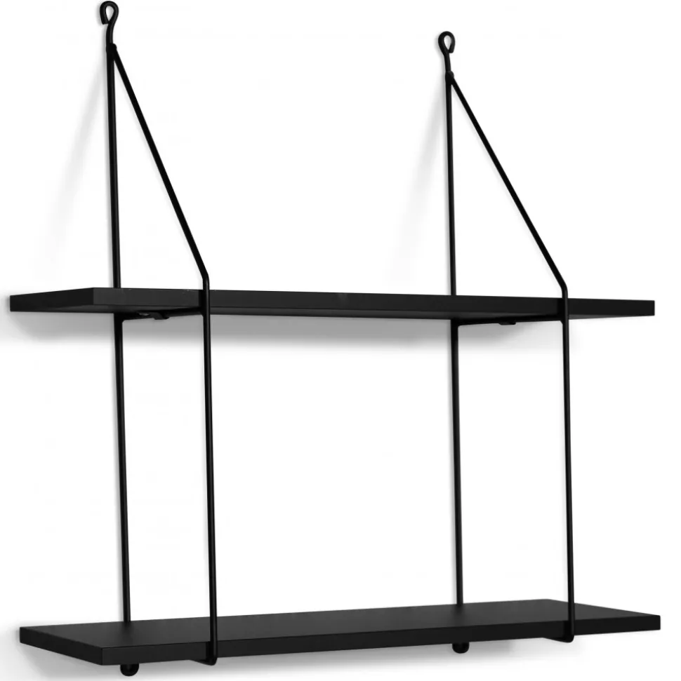 Vesper vägghylla är en stilren och modern med två hyllplan i svart melamin och svartlackade metallgavlar med en trendig design. Perfekt för att skapa extra förvaring och samtidigt ge väggen ett dekorativt lyft.