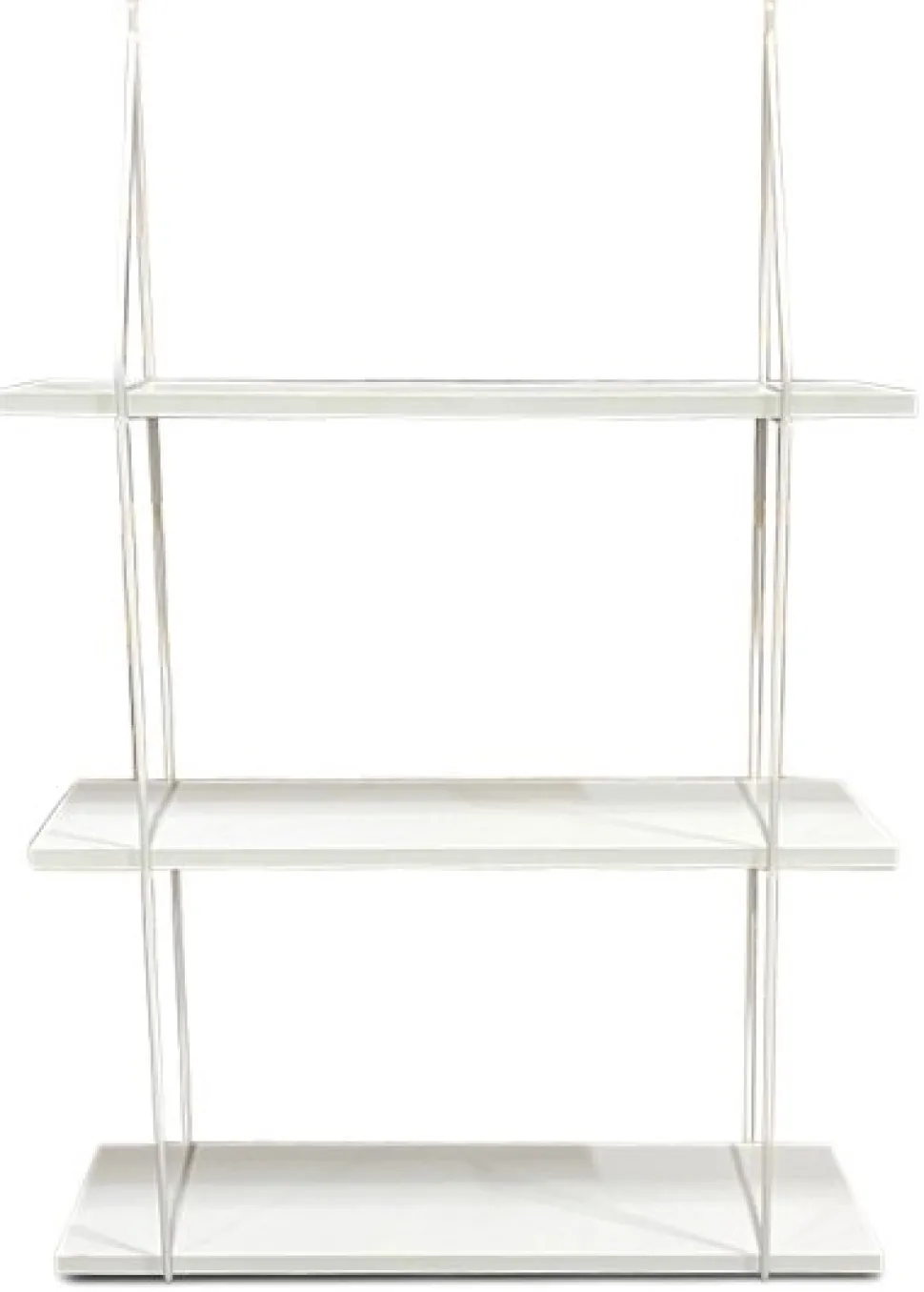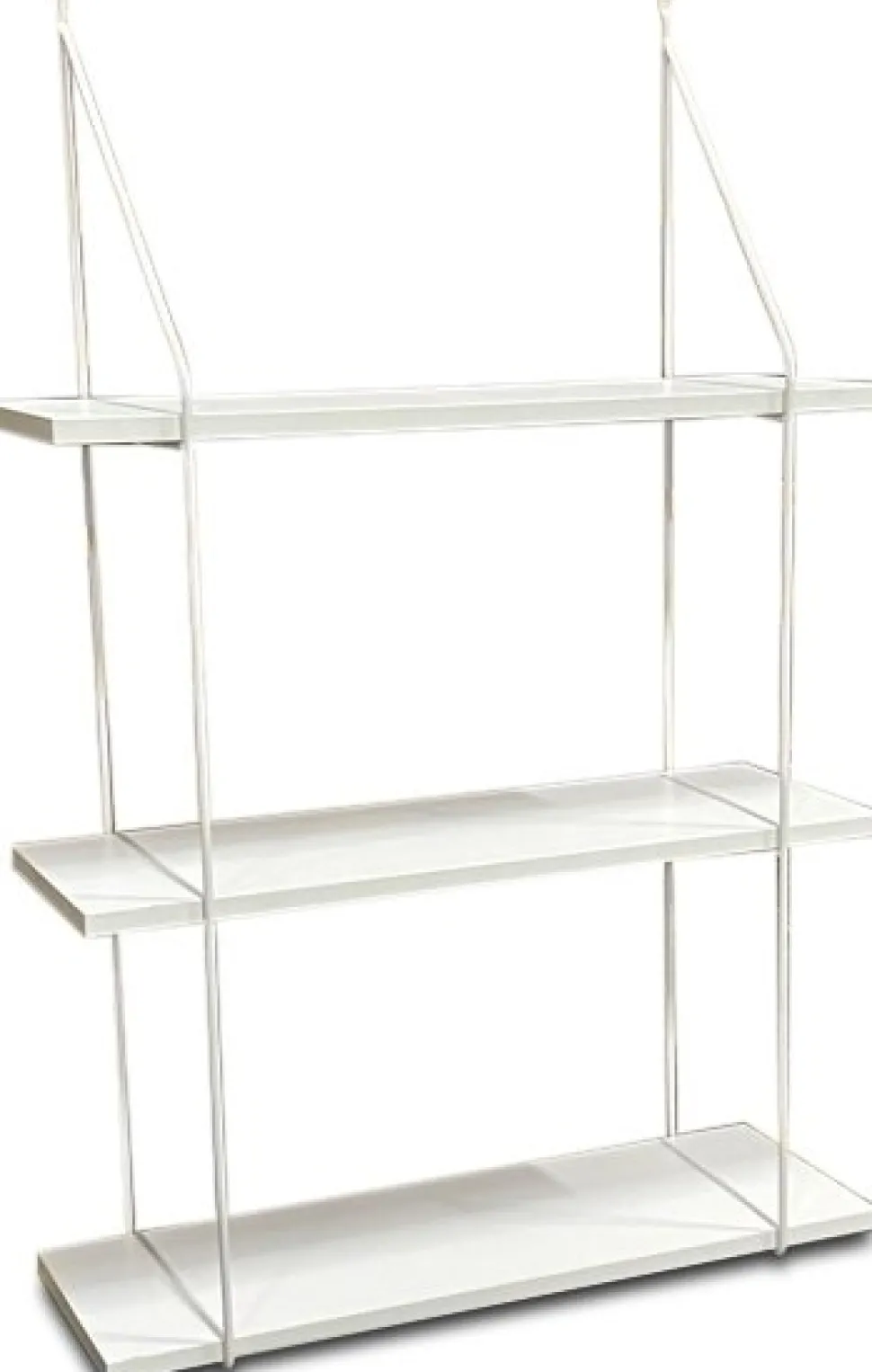 Vera är en förvarings-serie med produkter av hög kvalitet. tre stycken hyllplan i vit melamin samt vitlackade metallgavlar i fräsig design. Placeras på väggen.