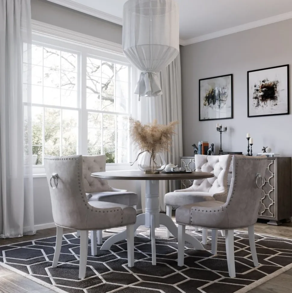 - Victoria matgrupp, runt matbord Ø120 cm med 4 st Tuva stol Cleopatra – Vit/Brunbets