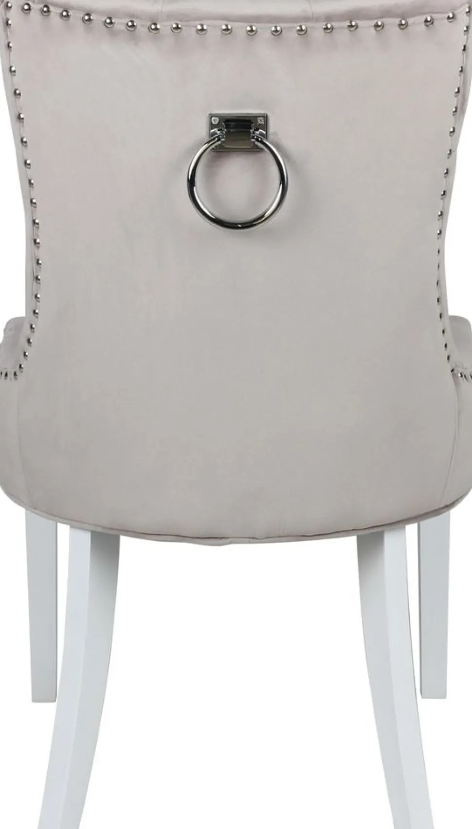 Inklusive 4 st Tuva matstolar i beige sammet med kromade nitar och ring-handtag i ryggen. Matstolaen har vitlackade träben. Denna serie stolar är en av Trendrums mest populära.