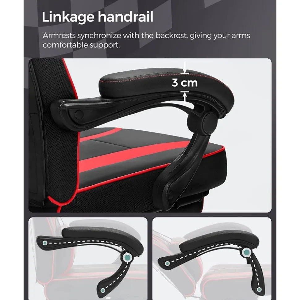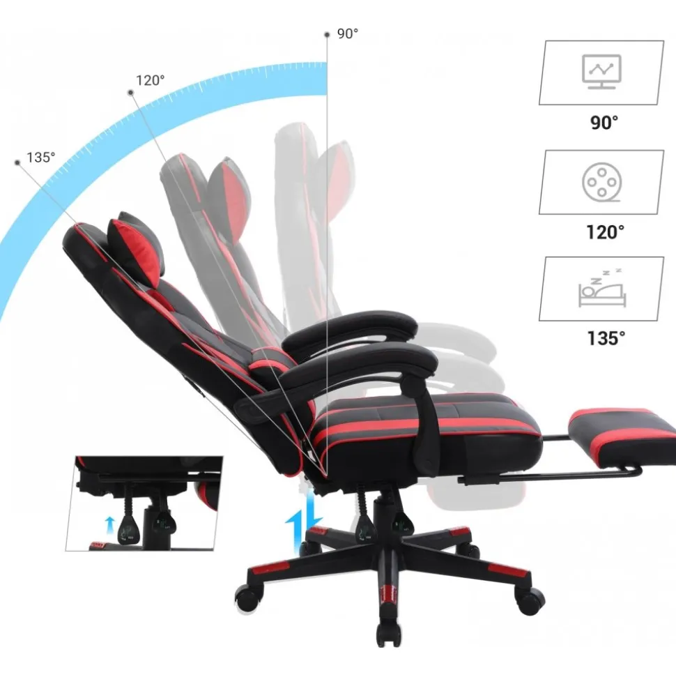 Kontorsstol med klädsel av PU-läder. Stolen har tilt-funktion, justerbar höjd och utfällbart fotstöd. Tål en belastning av 150 kg.