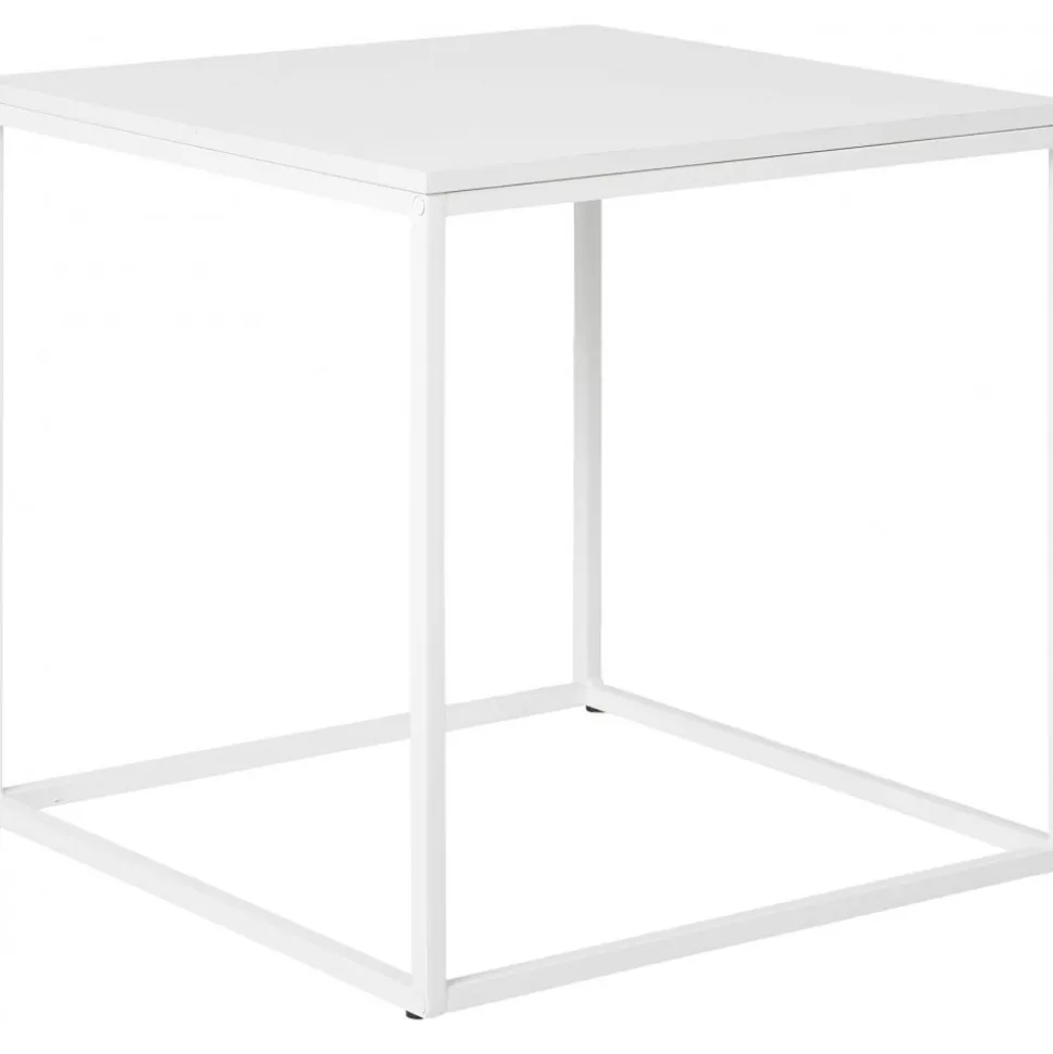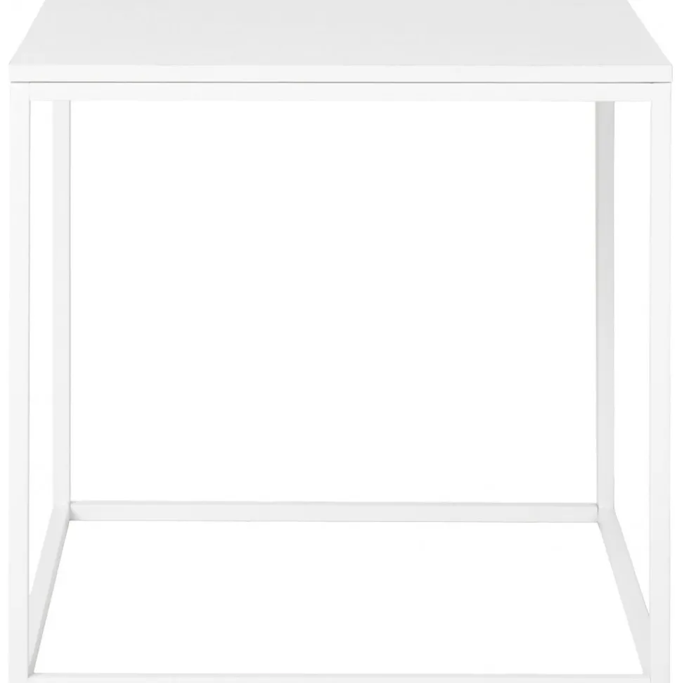 Sidobord av stål och melaminbelagd spånskiva.