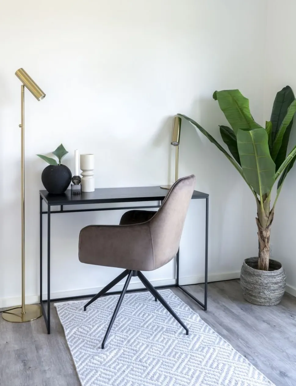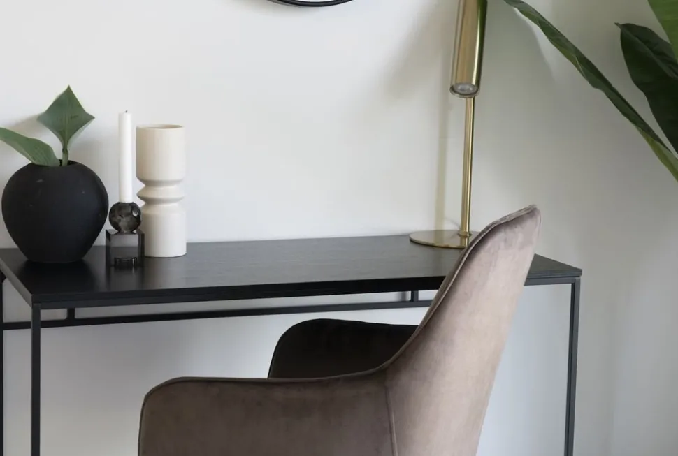 Skrivbord i svart med svart bordsskiva.