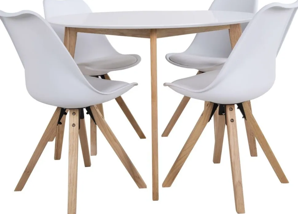 Matbord i vitt och natur träd.