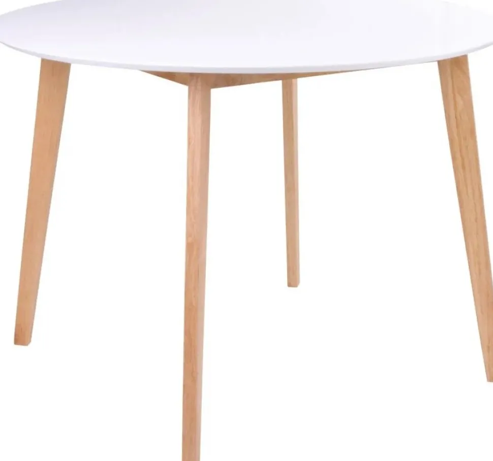 Matgrupp bestående av i vitt med träfärgade ben och 4 st i ljusbrunt microfibertyg. Levereras omonterad.