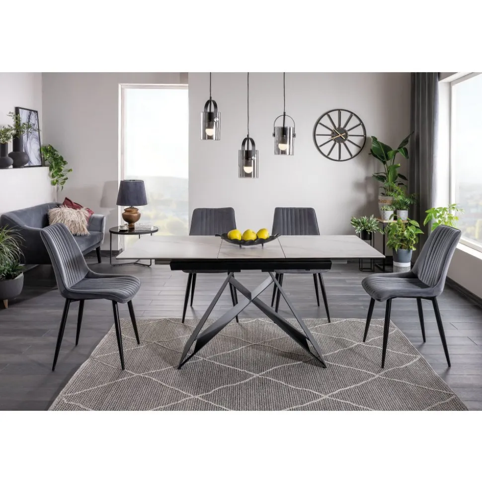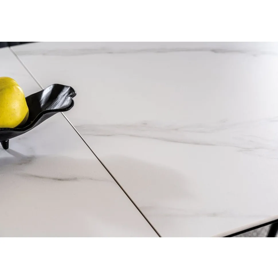 Matbord av metall. Bordsskiva av keramik och tempererat glas.
