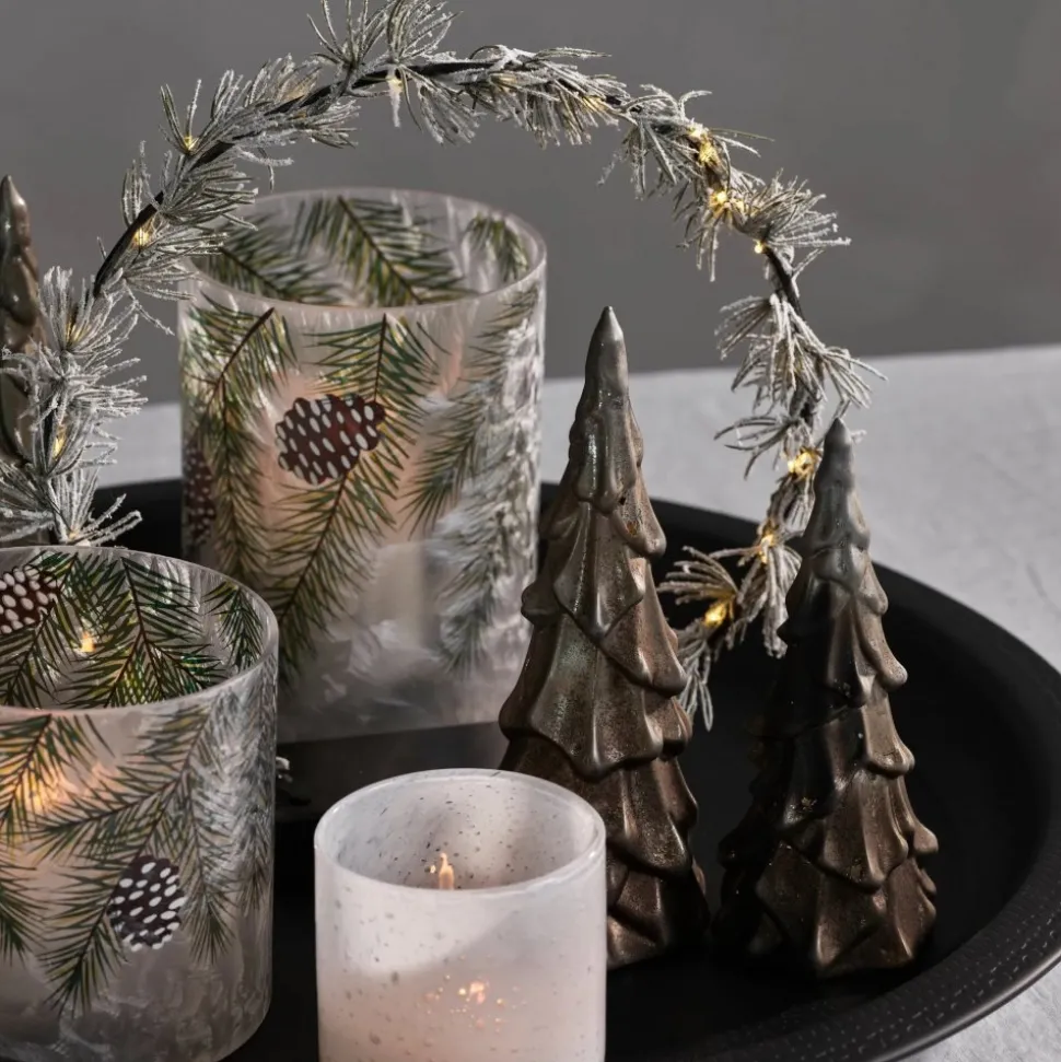 Julgran av glas med integrerat ljus som drivs av knappcellsbatteri (CR2032).