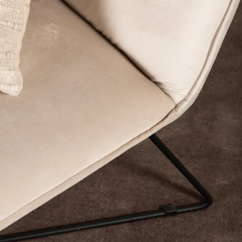 Skapa en inbjudande och avkopplande atmosfär i ditt hem med hjälp av en loungestol. Designen är helt enligt trenderna med en tidlös skandinavisk minimalism kombinerat med hög komfort. Dynan i beige sammetstyg har optimal tjocklek och lutning för bästa komfort när du önskar koppla av. Den smala stommen är svetsad i svart pulverlackerad metall och bidrar till ett modemedvetet helhetsintryck. Placera solitär som stilikon eller tillsammans med soffgruppen i vardagsrummet! Levereras omonterad.