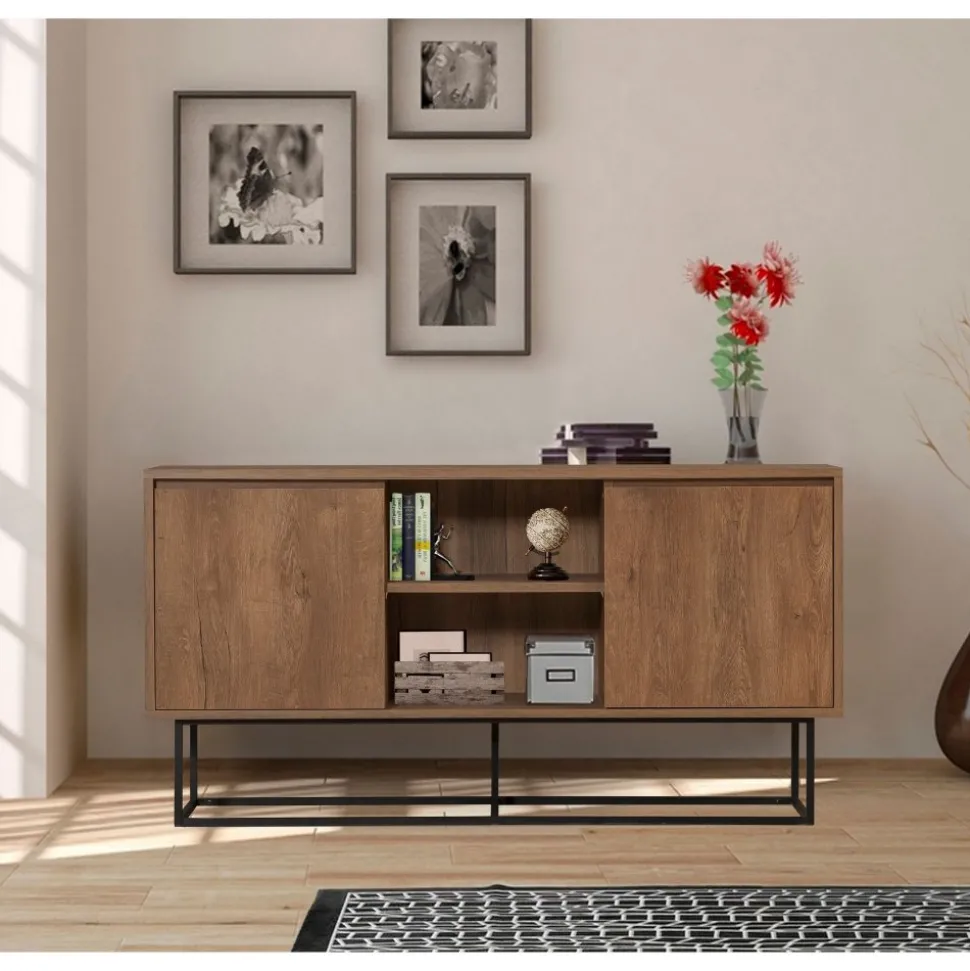 Skänk av trä och metall.