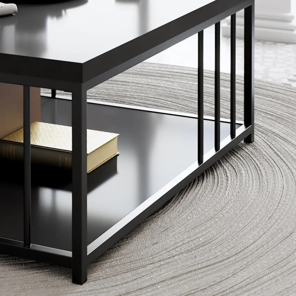 Soffbord av trä med ben av metall.